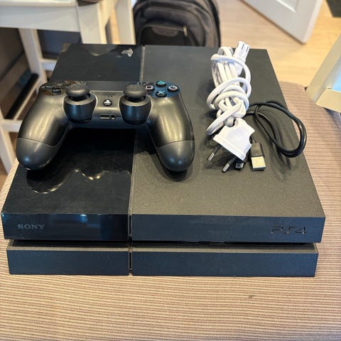 Sony Playstation 4 spillkonsoll i svart farge. Konsollen har standard tilkoblingsporter inkludert HDMI, Ethernet, og USB. Designet for hjemmeunderholdning og spillopplevelser. Selges uten kontroller. Fungerer som den skal.