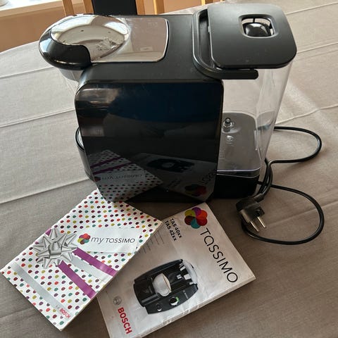 Tassimo kaffemaskin, brukt, men fungerer som den skal, bare en smule treig. Lokket på vanntanken er knekt av, men har ikke noe særlig å si for bruk. Hentes på Hovden eller leveres etter avtale på strekningen Hovden - Arendal.