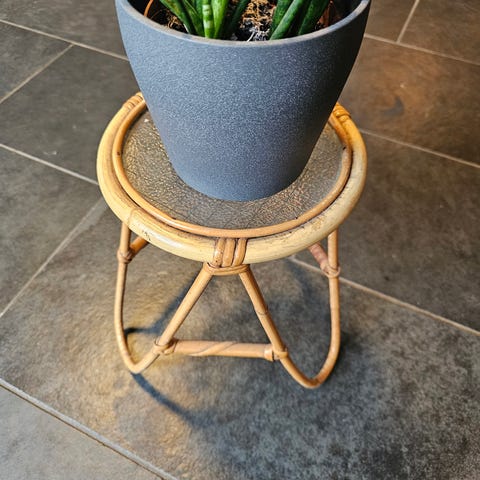 Vintage lite sidebord/ pidestall i bambus med glasstopp. Helt og pent.