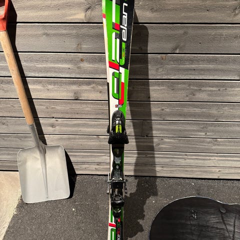 Technopro alpinski med bindinger og tilhørende alpinstøvler i størrelse 27,5-28. Skiene har et design med hvit og grønn farge, og støvlene har hvit og svart farge. Lagret tørt og fint innendørs utenfor sesong. Kan sende🤩