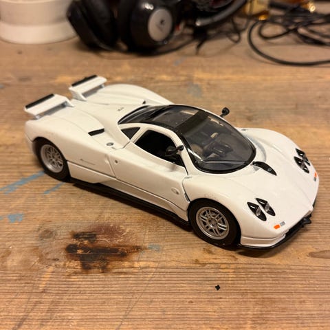 Infiniti FX35 modellbil i oransje farge. Skala 1:18. Laget av plast og metall. Modellen har detaljer som åpne dører og realistisk utforming. Egnet som samleobjekt eller dekorasjon.