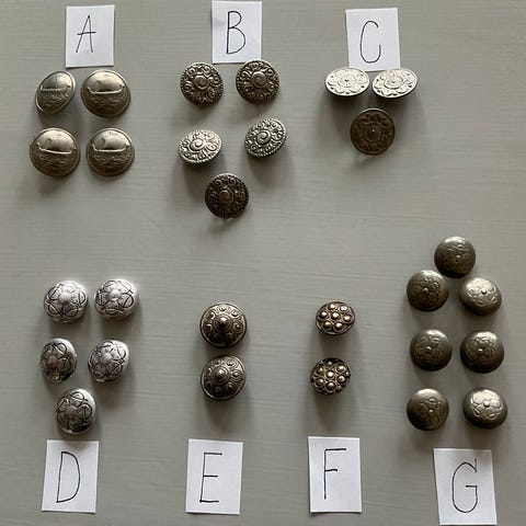 Eldre saks med justeringsskrue for å klippe knapphull. Skruen stilles inn for å lage like lange klipp i stoffet. Total lengde er 11,7cm. Kan sende, frakt tilkommer kjøper.