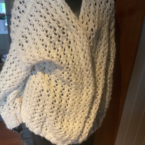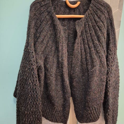 Hjemmestrikket ulljakke i modellen boblejakke. Fin oversized modell, lite brukt da det fort blir mange strikkeplagg.
