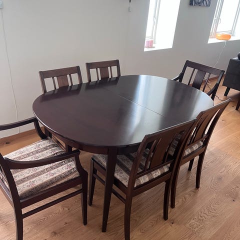 Spisestue med 6 stoler i mahogny