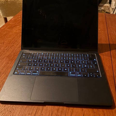 Apple MacBook Air bærbar PC med M2-prosessor og 8 GB minne. 100% batteritilstand og vært i veldig fin bruk.