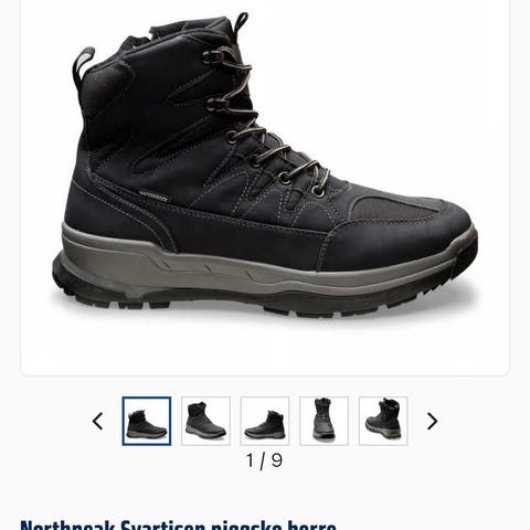 Finn.no autogenerert tekst sier 'Myrqvist Duved vinterstøvler i størrelse 45. Støvlene er laget av mørk brun semsket skinn og har en solid såle med godt grep. Designet for å gi varme og beskyttelse i kalde forhold'.