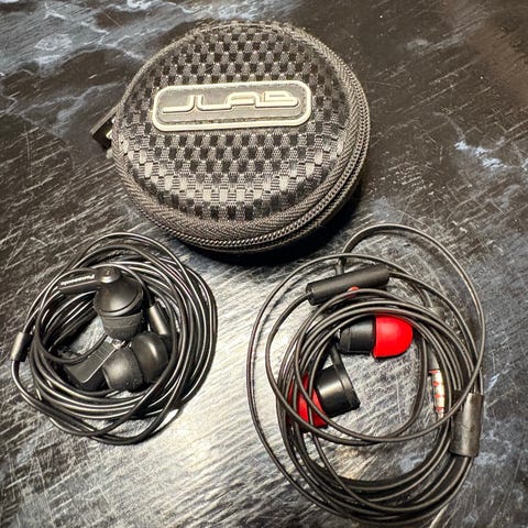 Audio Technica ATH-E40 in-ear hodetelefoner med etui, med 4 par ekstra ørepropper i ulike størrelser.