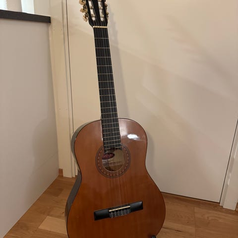 Jay Turser akustisk gitar i svart farge. Gitaren har seks strenger og er egnet for akustisk spilling.
