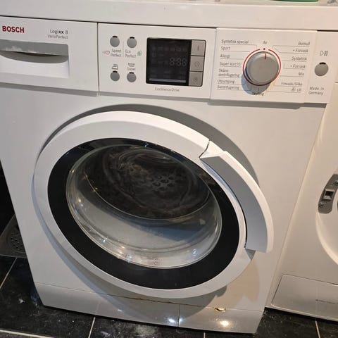 Vaskemaskinen er brukt i 1-2 år. Er dessverre noe gul misfarging på toppen, men dette er kun kosmetisk. Ellers funker den helt optimalt.