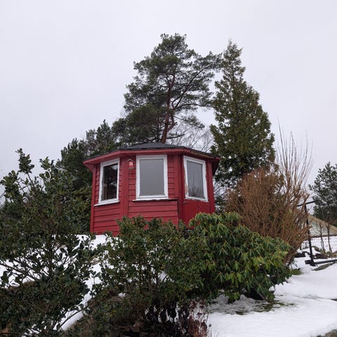 Målene er bredde: 2 meter, lengde 2,5 meter og mønehøyde 1,9 meter.