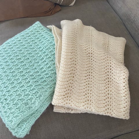 Fruen i huset har strikket deilige og varme baby tepper som nå selges .