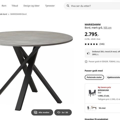 Mariedamm spisebord med grå bordplate ønskes kjøpt. Diameter 105 cm.