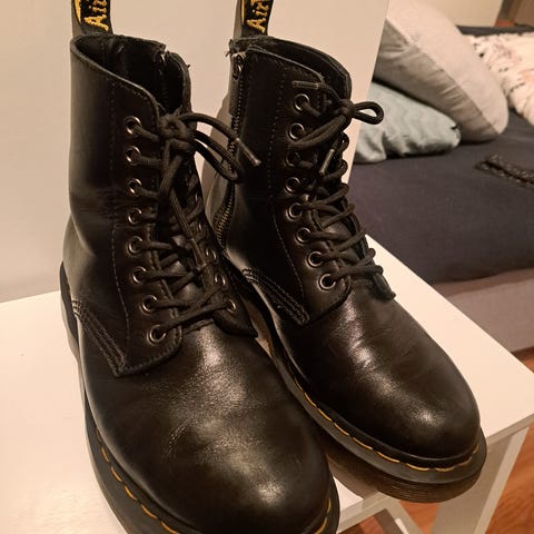 Dr. Martens støvler i svart farge, størrelse 38. Designet for allsidig bruk med snøring og robust materiale. Selges fordi de aldri blir brukt. Er et par år gammel, men kun lagt i skapet de siste årene.