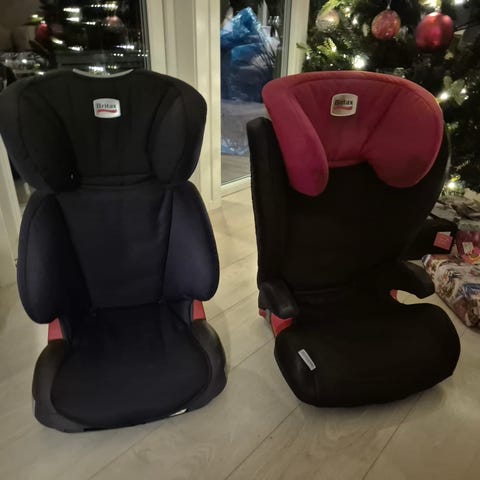 Det ene setet er noe mer slitt i underkant av beltegjennomføringen, men dette er bare i stoffet. Sendes ikke. Pris er per sete.