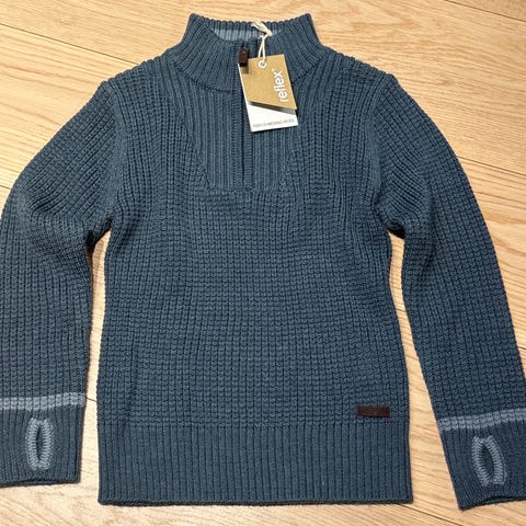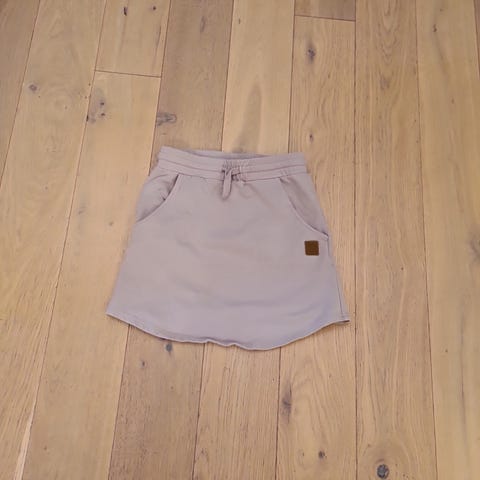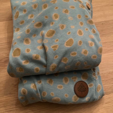 Sett fra Gullkorn Design - som nytt. Str 128. Deilig mykje stoff. Glidelås og mulighet for stramming i livet på jakka. Hettejakke/hettegenser og joggebukse.