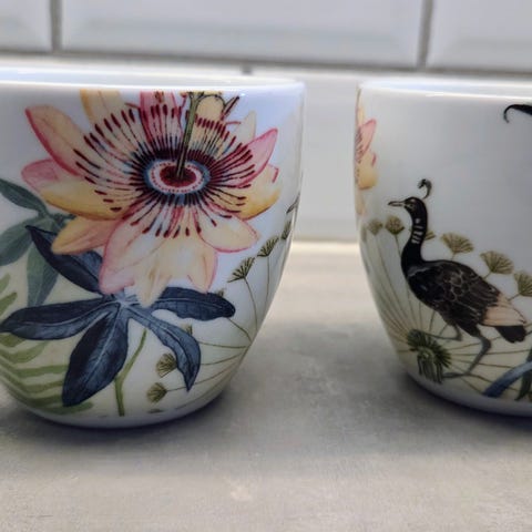 2 nydelige kopper fra Magnors cocatoo serie selges kr 125 per stykk, 200 samlet. Helt nye.