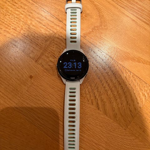 Selger en meget pen og velholdt Garmin Forerunner 265S med flott AMOLED-skjerm. Klokken er kjøpt ny i mars 2025 og fremstår som lite brukt og i topp stand.