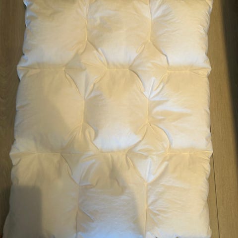 Den er ganske tykk (oppgitt som medium), og veier 115 gram. 90 % moskusdun, 10 % fjær.