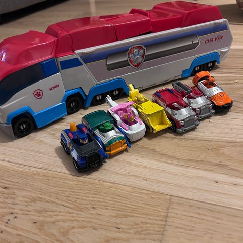 Paw Patrol leker som inkluderer utkikkstårn, ulike store og små kjøretøy, båt og figurer. Pris under, samlepris ved kjøp av flere: