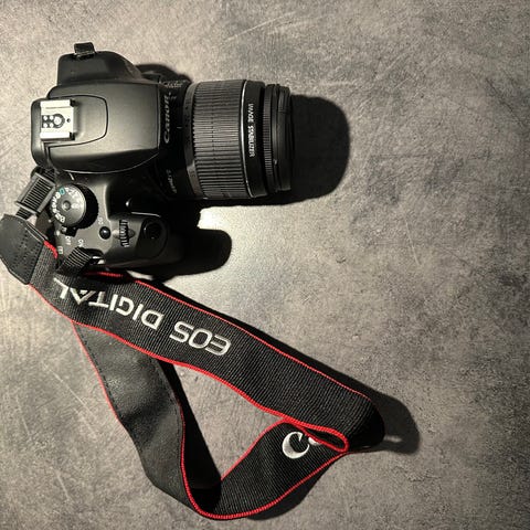 Canon EOS 1100D speilreflekskamera med utskiftbart objektiv, svart farge. Inkluderer Tamron 70-300mm zoomobjektiv med blenderåpning f/4-5.6 og Sigma 17-70mm objektiv. Kameraet har bakmontert LCD-skjerm og standard kamerafunksjoner for fotografering.
