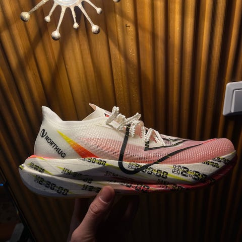 Strava sier de har blitt løpt 157km, her har jeg nok ikke endret skoen etter flere økter. Riktig tall er nok nærmere 100-120km. Brukt på testløp og fartsøkter ute