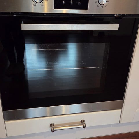 Den er litt mindre innvendig enn vanlige ovner. Stekebrett bredden er 40cm, dybden 35cm.