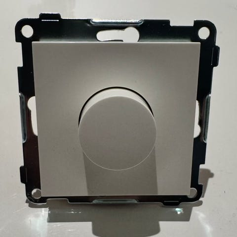 Elko Dimmer bryter i hvit farge. Designet for å regulere lysstyrken i elektriske lyskretser. Passer til standard montering i vegg. 230v 20-315VA 50 Hz.