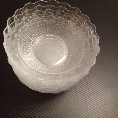 Fruktfat og godisskål i brunspettet farge, selges samlet for kr. 200,-. Må hentes. Meget god stand.