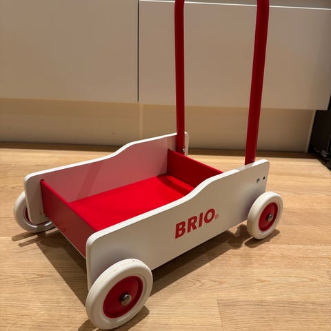 BRIO Gåvogn i tre, rød farge. Egnet for små barn som lærer å gå. Laget i robust materiale for stabilitet og sikkerhet under lek.
