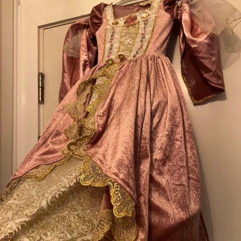 Rosa/ vinrød , mangler en perle knapp på ene siden - kan sys på og følger med. Str S/ liten M. Ikke verdens beste kvalitet, men helt grei til utkledning