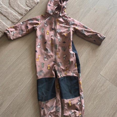 Selger en softshell dress i str 86. Fint brukt forutenom flekker på rumpe/kne og en liten rift i det ytterste laget på ett av knærne.
