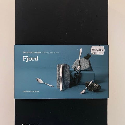 Hardanger Bestikk Fjord bestikksett består av 40 deler. Designet av Odd Leikvoll i 2000, med minimalistisk stil. Settet inneholder ulike bestikktyper egnet for kjøkken og servering.