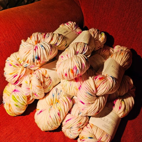 2 stk Candyfloss garn i 150 grams nøster med flerfarget design. Garnet er mykt med børstet effekt.
