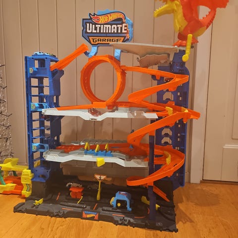 Hot wheels garasje selges. Hender at heisen ikke går helt opp (mulig det kan fikses i følge google, men ikke prøvd). Har i det siste også hendt innimellom at haien ikke lukker munnen så man må prøve flere ganger.