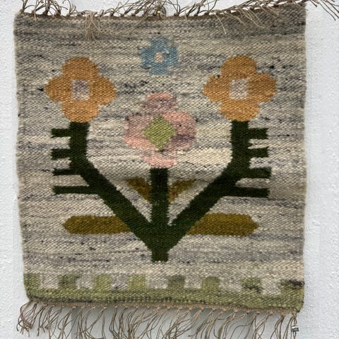 Pent håndlaget vevd veggteppe.