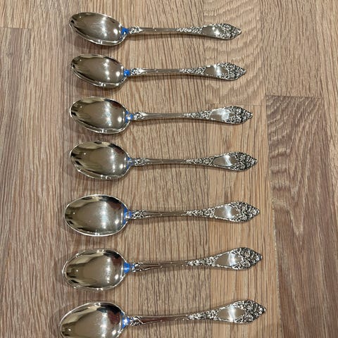 Seks teskjeer 12 cm. Et flott dessert sett.