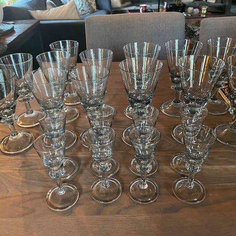 Selger 12 vinglass i Tangen antikkgrå 15 cl (1,5 dl) fra Hadeland Glassverk. Hentes i Ski. 200,- pr stk.
