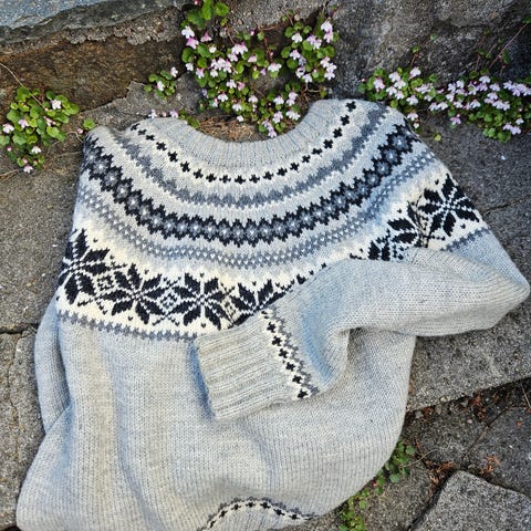 Herlig hjemmestrikket lang genser/ ullkjole str m