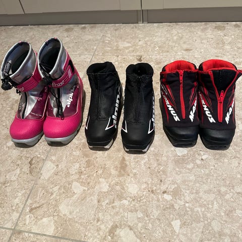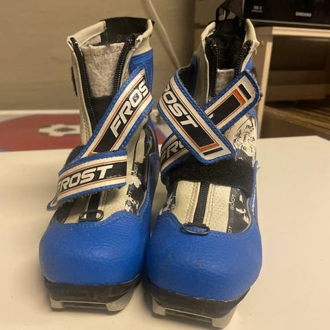 Frost skisko for barn i lilla farge, storleik 28. Skiskoa har borrelåsstramming for enkel justering og sikker passform. Egnet for barn som ønsker å gå på langrenn.