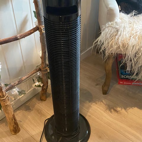 Air Cooler 3 in 1 Fan-Cooler-Humidifier tårnvifte i hvit farge. Viften har et høyt og slankt tårndesign, som gir jevn luftstrøm. Passer til bruk i hjem eller kontor for å gi kjøling.