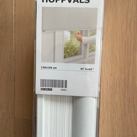 2 stk Hoppvals plisségardin, dobbel, hvit, 100x155, 275,- stk
