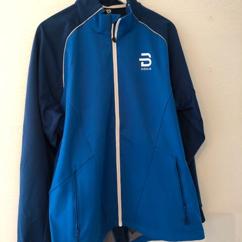 Bjørn Dæhlie jakke i blå og svart farge, størrelse L for herre. Egnet for ulike sportstyper.