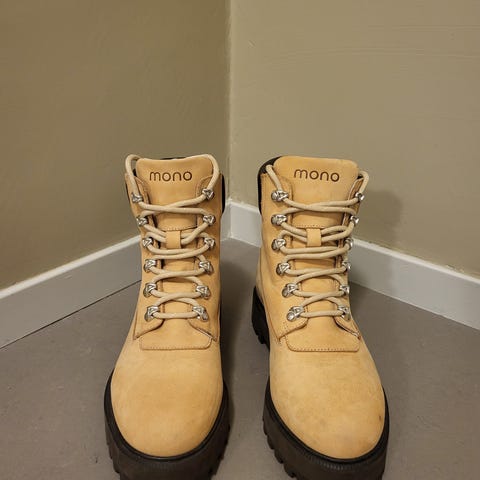 Pent brukte Mono hiking suede nude str 38. Pent brukt, kun et bittelite hakk bak på den ene sålen (se bildet bakfra). Skoene kunne hatt godt av en runde med impregnering.