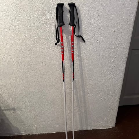 Gabel langrennsstaver med lengde på 100 cm. Staver har svart og gul farge med ergonomisk håndtak og stropper for bruk ved slalåm.