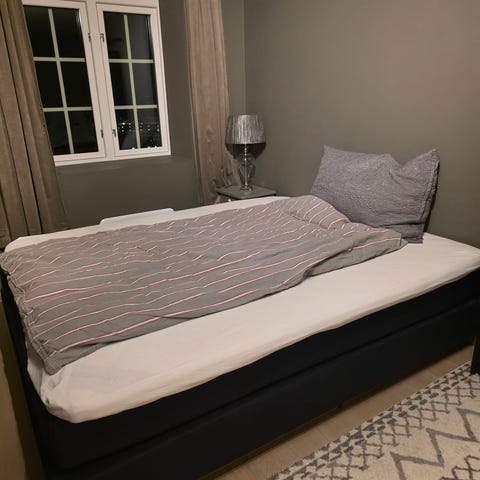 Selger denne rammemadrassen til en rimelig pris på 1500 kr grunnet flytting. Den er i en beigefarge og hvit. Sengegavl medfølger ikke.