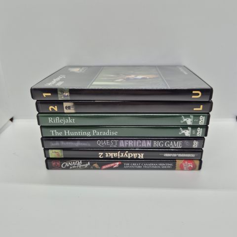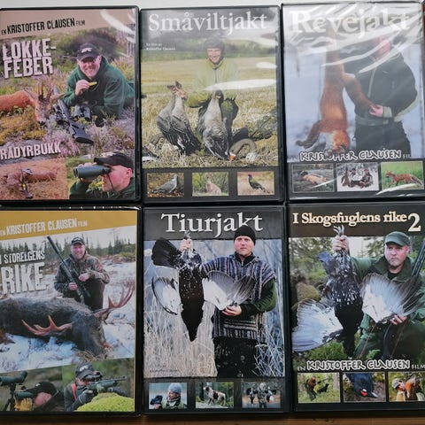 Pakke med 11 DVD-er som inneholder ulike jaktfilmer og fiskefilmer. Inkluderer titler som "Elgjakt", "Hjortejakt", "Ascension Island", og andre. Filmene dekker temaer som elgjakt, hjortejakt, villmarksliv og jaktopplevelser. Passer for personer med interesse for jakt, fiske og natur.