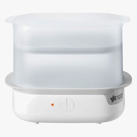 En elektrisk sterilisator fra Tommee Tippee, med en enkel og smart design. Sterilisatoren kan sterilisere opp til seks flasker på bare fem minutter. Rengjøringskraften til dampen når til og med vanskelig tilgjengelige steder og dreper 99,9% av alle bakterier. Når lokket er lukket holdes innholdet sterilisert i opp til 24 timer. Slå på sterilisatoren før du legger deg og våkne opp til rene tåteflasker og smokker!