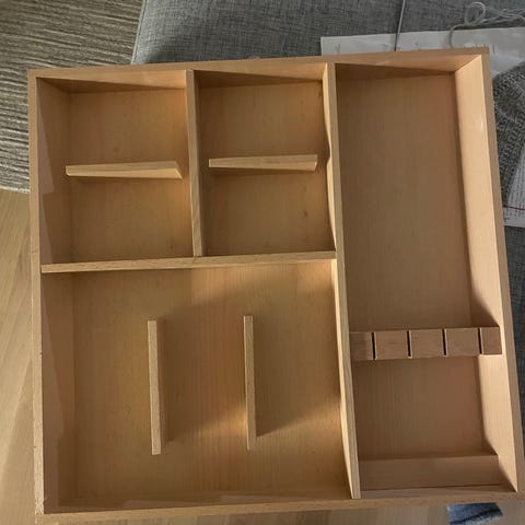 IKEA bestikkinnsats laget i tre. Designet for organisering av bestikk og små kjøkkenredskaper. Passer til standard kjøkkenskuffer.