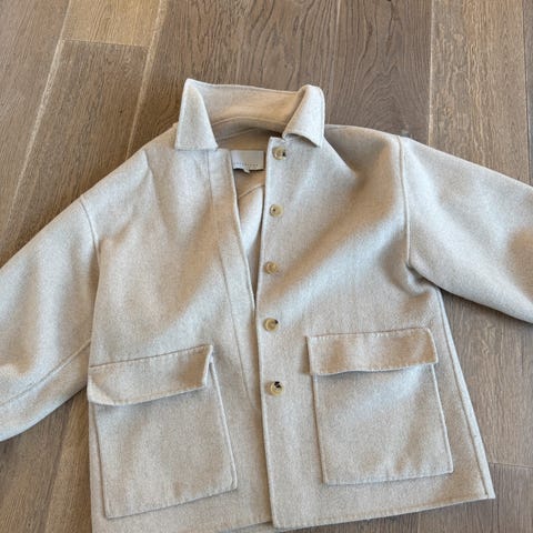 Stella Nova ulljakke i blå farge, størrelse 38 for kvinner. Jakken har hovedmateriale av 70% ull og 30% polyester, med fôr av 68% viskose og 32% polyester. Jakken har knappelukking og lommer.