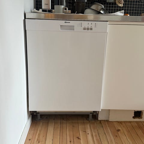 Gram oppvaskmaskin med standard størrelse. Maskinen har flere oppvaskkurver. Den har et rustfritt stålinteriør og er egnet for husholdningsbruk.